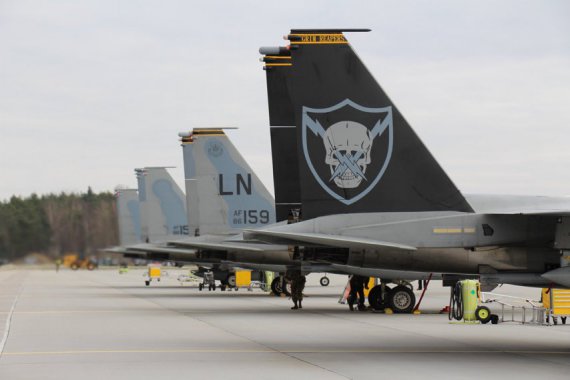 У четвер, 10 лютого, до польської авіабази Ласк прибули американські винищувачі F-15 для посилення Східного флангу НАТО.