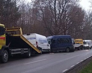"За попередніми висновками поліцейських, які працюють на місці події, 29-річний водій буса Fiat виїхав на зустрічну смугу та допустив лобове зіткнення з бусом Mercedes, за кермом якого перебував 60-річний громадянин України. 23-річний громадянин України, який також керував бусом Mercedes, в'їхав в бус, який стояв попереду", - сказано в повідомленні.
