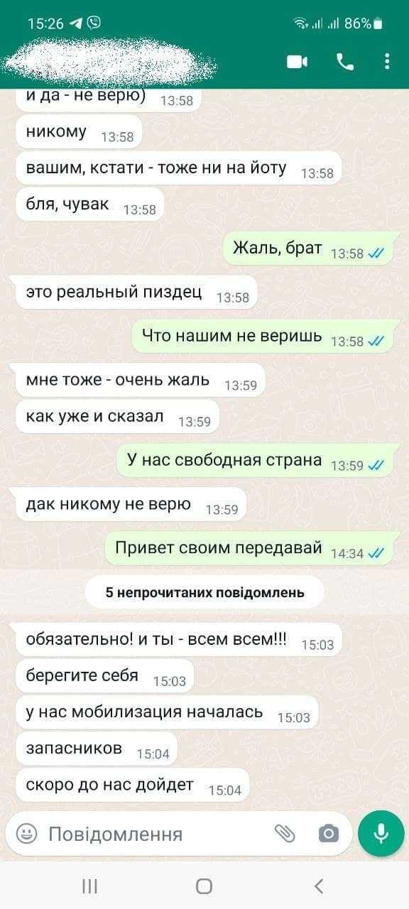 "У нас мобилизация запасников. Скоро до нас дойдет", - розповів.