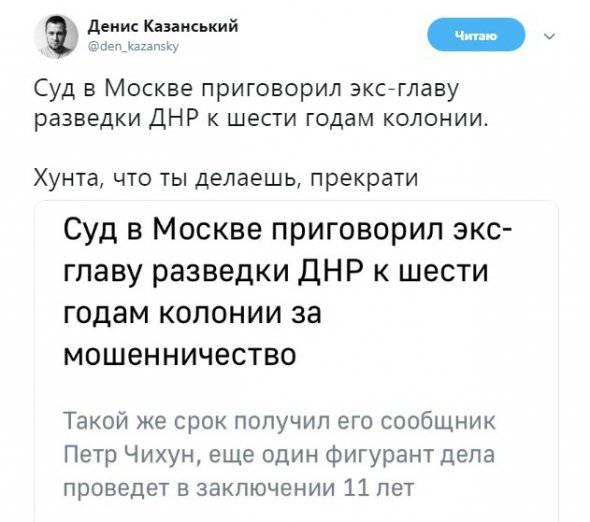 "Хунта, що ти робиш, припини", - написав в Twitter журналіст Денис Казанський.