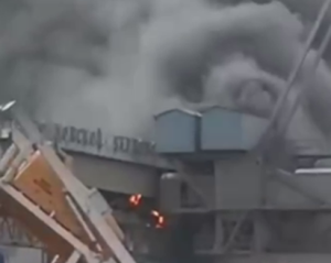 Російські Telegram-канали написали, що загорілася транспортна стрічка у зерновому терміналі.