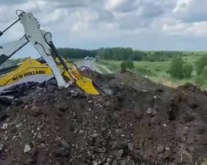 У Російській Федерації екскаватори риють ями на шосе.
