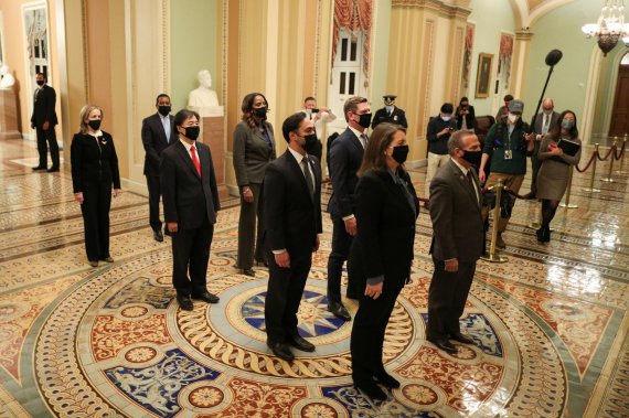 9 конгресменів-демократів, які виступатимуть обвинувачами, пронесли письмове звинувачення через ротонду Капітолію у зал Сенату, слідуючи тим самим маршрутом, по якому йшов натовп прихильників Трампа. 9 лютого Сенат почне слухання, повідомляє CNN.