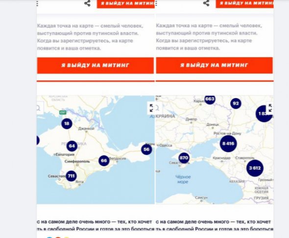 Інтерактивна карта, на якій відзначають кількість людей, готових вийти на протести на підтримку Навального у Росії, розміщена на новоствореному сайті "Свободу Навальному". Про це повідомив голова Меджлісу крімськотатарского народу Рефат Чубаров у Facebook.