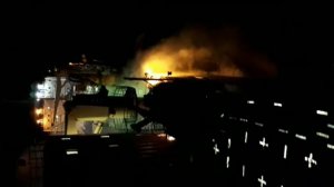 Також джерело додало, що протиаварійна партія плавбази продовжує боротися з пожежею. Протипожежних засобів на судні вистачає.