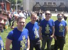 Українці, які живуть в Португалії, також пішли на акцію. Однак, на їхніх в футболках був напис "Зберігай спокій. Путін х*йло".