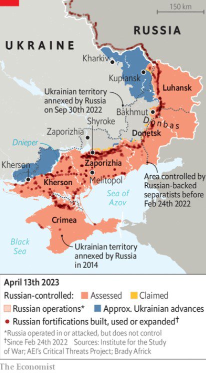 Український контрнаступ має відбутися найближчими днями чи тижнями. Майже ніхто достеменно не знає, де й коли розпочнеться. Усі подробиці є лише у п'ятьох чиновників, зазначив 6 квітня голова РНБО Олексій Данілов. Але росіяни готові. 12 квітня британська військова розвідка повідомила, що Росія завершила будівництво трьох ешелонів оборонних рубежів уздовж 120-кілометрової лінії фронту в Запорізькій області, чекаючи наступу на Мелітополь. Відвоювання цього міста допоможе Україні перерізати "сухопутний міст" Росії між окупованими Донбасом та Кримом.