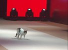 На показі мод в Стамбулі, Туреччина, на подіум вийшла кішка. Вона спочатку посиділа, потім почала гратись із моделями, що проходили повз неї. Глядачів модного показу чорно-білий кіт вразив.