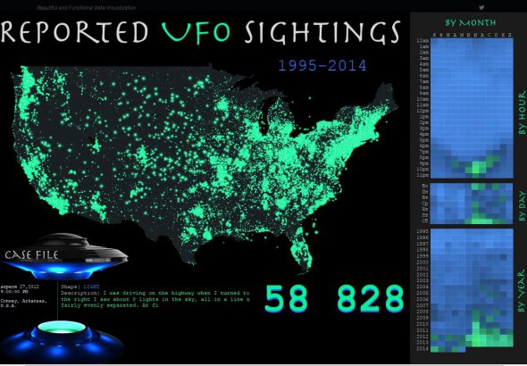 Більшість повідомлень про НЛО надходять по суботах. Найчастіша їхня поява — в 21:00 - 23:00