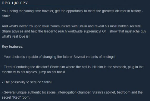 Ігрова платформа Steam опублікувала прев'ю нової гри під назвою Sex with Stalin.