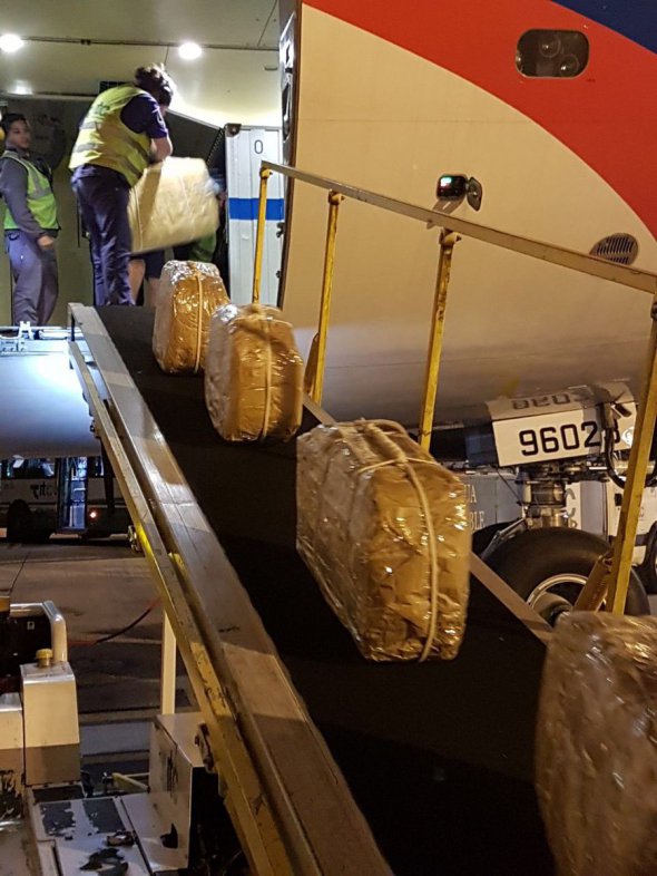 Знімки літака "Росія", що належить відділу управління справами президента Путіна, опублікували раніше. На фото видно, як із нього дістають вантаж з борошном. Його під видом кокаїну везли з Аргентини, аби викрити в Росії причетних до дипломатичного наркоскандалу.