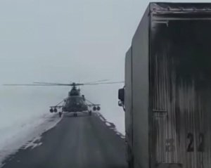 На кадрах видно, як з вертольота вибігає пілот і питає про щось у водія фури.