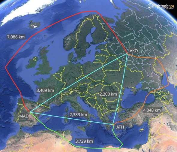 Політ росіян з Афін проходив переважно через дружній повітряний простір. Наприклад, літаки Російської Федерації можуть літати через Туреччину.