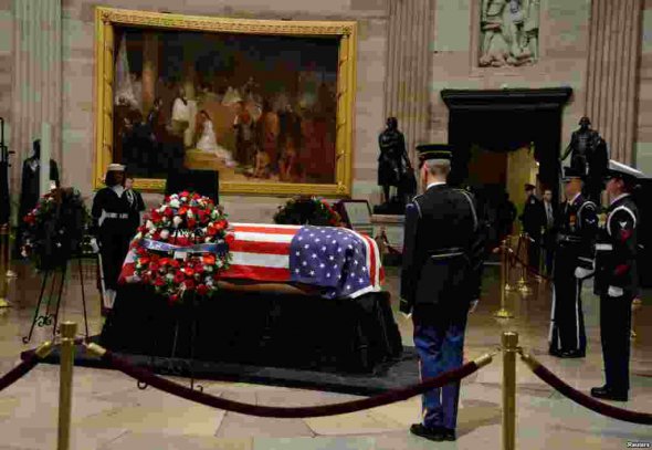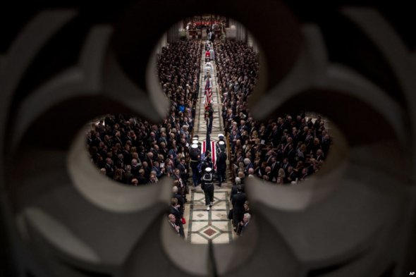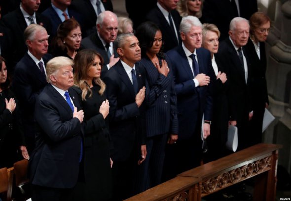 Зокрема, на церемонії в Вашингтонському кафедральному соборі були присутні теперішній президент США Дональд Трамп, а також екс-глави держави Барак Обама, Джиммі Картер, Білл Клінтон.