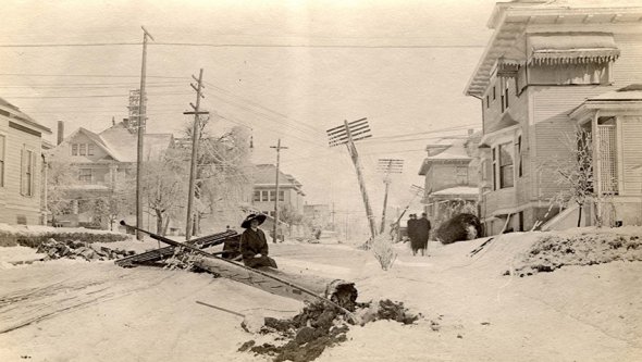 "Сніжна буря 1888-го" охопила весь північний схід США, поховавши під снігом більше 400 людей. Снігопад був настільки сильним, з таким диким вітром і різким похолоданням, що містечко Саратога-Спрінгс просто таки було поховане під двома метрами снігу.