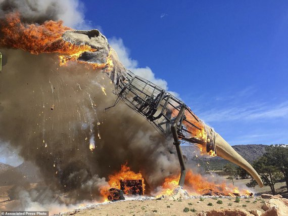 Гігантський повнорозмірний макет тиранозавра згорів у туристичному парку в штаті Колорадо, США.