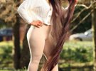"Я рідко виходжу на вулицю з розпущеним волоссям, бо воно волочиться по землі, навіть коли я на високих підборах. Про ескалатори я вже мовчу", - прокоментувала жінка.