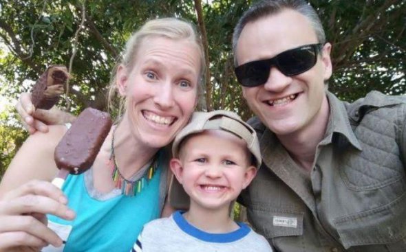 Зоологи Сем і Кеті Уїльямс разом з сином Фінном. Мати з дитиною знаходяться в лікарні після нападу жирафа