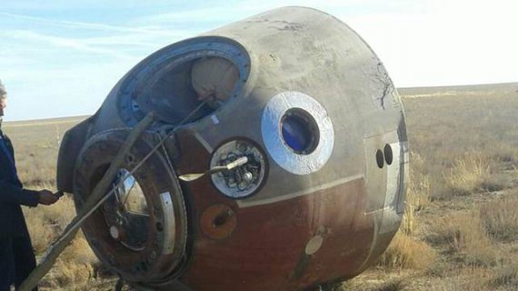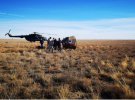 Прес-служба російського Центрального військового округу розповсюдила перші фото та відео з місця приземлення рятувальної капсули ракети "Союз МС-10" у степах Казахстану.