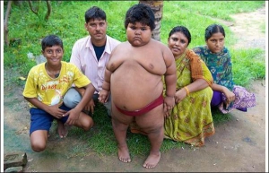 5-річна Суман Кхатун із селища Метіала в індійському штаті Західна Бенгалія важить 76 кг. Вона з"їдає 10 кг рису, 24 яйця, 5 кг картоплі та випиває 6 л молока за тиждень. Має зріст 1 м.