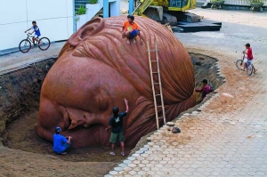 Чотириметрову голову за три дні виліпили в індонезійському місті Джок'якарта. Витратили 25 тонн глини.