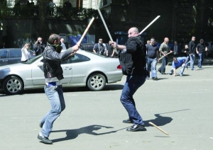 — На акціях багато старших людей, — розповідає журналіст 34-річний Георгій Джахая. — Вони вийшли, бо все, заради чого жили і працювали, зникло. Тобі 50–55, ти все життя трудився на якомусь заводі. Потім він закрився. Ти і не пенсіонер, і без роботи. Хоча й молодих вийшло чимало. У них у руках пластикові труби з прапорцем на кінці.