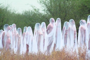 Оголені моделі, загорнені в напівпрозору білу тканину, зображують душі померлих для фотопроекту американця 45-річного Спенсера Туніка. Він зібрав 150 оголених чоловіків і жінок у полі в передмісті мексиканського міста Сан-Міґель-де-Альєнде, штат Ґуанахуато. Свої роботи присвятив дню померлих, який мексиканці святкують 1 листопада. Дехто з моделей, коли дізнавалися про це, відмовлялися фотографуватися. Були не проти оголитися, але боялися ролі мертвих душ.