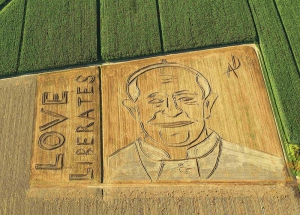 Портрет Папи Франциска на пшеничному полі поблизу італійського міста Верона. Художник Даріо Гамбаріні створив його за 6 год. Користувався трактором із плугом та бороною. Назва картини "Любов звільняє", площа — 25 тис. кв. км. Гамбаріні працює у стилі ленд-арт. Викошує на полях величезні малюнки й портрети, які можна роздивитися лише з висоти.