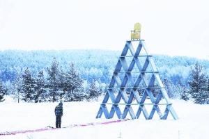 Споруду складали на узліссі за містом, так що глядачів не було. Фотографії та відео художник потім оприлюднив на своєму сайті.