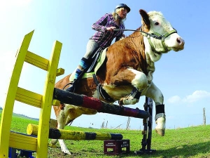 Німкеня 15-річна Реґіна Майєр півтора року їздить верхи на корові. Вона з дитинства мріяла про коня. Але батьки відмовилися купувати цю тварину. Тому почала об'їжджати корову.