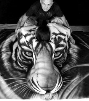 Майстер-художник боді-арту Крейґ Трейсі, 43 роки, почав захищати тигрів. Каже, це його улюблені тварини. Увагу громадськості до звірів привернув своєю роботою "Останній південнокитайський тигр". Трьох роздягнутих дівчат Крейґ розфарбовував 9 год. Коли вони всілися разом, вийшла об"ємна тигряча морда. Зробити такий ефектний боді-арт Трейсі попросила британська благочинна організація "Врятуйте китайських тигрів".
