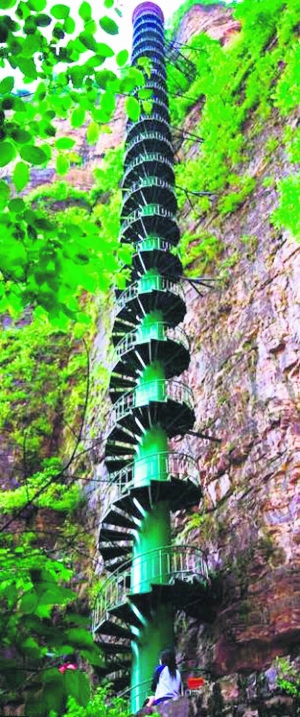 Кручені сходи заввишки 90 м установили біля прямовисної скелі в горах Тайханшань неподалік міста Лічжоу на сході Китаю. У мерії вважають, так туристи зможуть отримати емоції як від скелелазіння, але без небезпеки для життя.