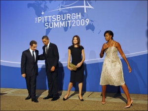 24 вересня подружжя зустрічало учасників саміту "Великої двадцятки" в американському місті Піттсбург, штат Пенсільванія. Доки Барак Обама обговорював із лідерами найпотужніших країн світу наслідки економічної кризи, Мішель розважала президентських дружин. Водила їх у місцеві музеї й театри. Пам"ятні подарунки готувала заздалегідь. Мед добували із стільників, які встановлені неподалік Білого дому у Вашингтоні. Мішель Обама сама за ними доглядає. Продукт розлили у кришталеві флакони з особистим підписом першої леді США.