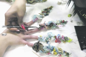 — На нігті пішло 2 кілограми гелю і 700 грамів акрилу, — розповідає Крісті. — Моделі наростила 10-сантиметрові акрилові нігті. З гелю виліпила русалку, восьминога, морські хвилі, водорості й мушлі. Нігті вийшли важкими. З такими не попрацюєш на клавіатурі та не помиєш посуд.