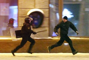 — Діяв омон дуже жорстко. Людей били гумовими палицями, найактивніших валили на асфальт, копали, — розповідає "ГПУ" 28-річний Олександр Березін із Мінська. — Нема організованості. Ніхто не пояснював, куди йти, що робити. Хтось крикнув — "зараз водою поливатимуть". А в мінус 10 це — страшно.