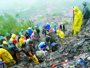 Рятувальники та добровольці шукають тіла людей під тоннами непотребу. Сильний вітер і зливи вщент зруйнували стінки сміттєзвалища в гірському місті Багіо на півночі Філіппін. На житлові будинки, розташовані в низовині, посунулися тонни сміття. Гора відходів зруйнувала кілька будівель. Під завалами зникли безвісти щонайменше п'ятеро людей, двоє дітей загинули.