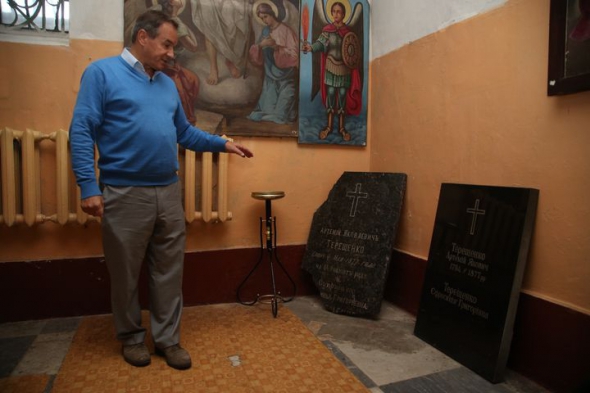 "26 вересня 2003 мене терміново викликали з Києва в Глухів: вирішили робити ексгумацію останків Терещенків. 27 вересня я вже був у нижньому храмі. Відсунули 6-8 плит які там були і зробили люк, щоб могла пройти одна людина. Дали мені спецодяг, ліхтарик, і я маленькими дерев'яними сходами спустився вниз. Мені сказали: "Ваше завдання — відкрити саркофаг і сказати нам, що всередині". Коли я спробував відкрити саркофаг, ручка лишалася в мене в руках. Тоді я просто натис на віко — і саркофаг відкрився. Я побачив ціле незотліле тіло Ніколи Артемійовича. Я бачив його так як бачу зараз вас. На той час він пролежав у саркофазі уже сто років, ніби чекав на мене. Все було ціле: шкіра на кістках, волосся, борода. Дивитися на нього мені було зовсім не страшно, а чомусь дуже приємно. Здалося, що він усміхався. Це було диво" - згадує Терещенко.