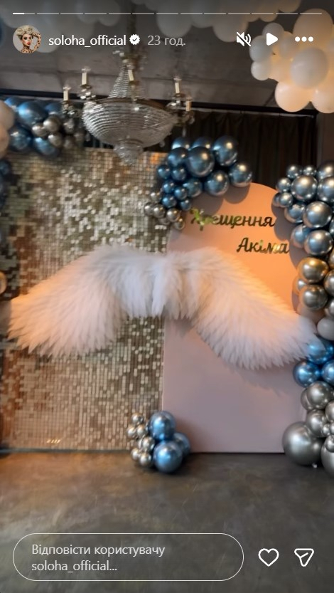 Блакитний торт і фотозона з крилами: СолоХа виклала кадри з хрещення сина