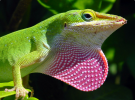 Цвет тела североамериканского красногорлого анолиса варьируется в зависимости от настроения и активности, при этом самки часто темнее. Горловой мешок имеет красную окраску.