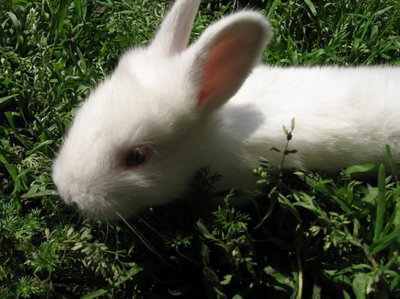 Говорит, кролика легко научить танцевать на задних лапках, если водить по кругу над носиком морковью или сухариком. Животное любит перескакивать с колена на колено хозяина и барабанить лапками.