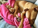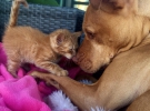 В городе Феникс, штат Аризона 6-летний питбуль Бубба приютил маленького котенка.
