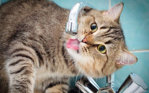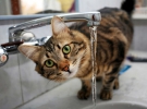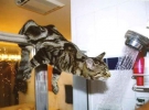 После вкусного перекуса коты ищут где можно попить воды. И выбирают не тарелку, приготовленную хозяином, а кран. Подставляя свои яркие язычки под струю воды, они не думают об удобствах.