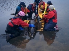 Утром начался прилив, и животное смогло вернуть в глубокие воды.