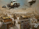 Художнику удалось невероятное сочетание ретро транспорта и технологий будущего.