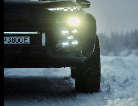 Более спортивный кроссовер Audi Q6 e-tron Sportback взяли за основу. Авто отличается аркообразной крышей. Его фактически подготовили к серьезному бездорожью.