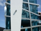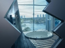 При выборе материалов для отделки элементов дизайнеры руководствовались популярностью авангардизма в архитектуре, что позволило сочетать бетонные стены, полы из дерева и гранита, огромные окна, стеклянные и алюминиевые покрытия. Свое место в декоре нашла и оригинальная мозаика Bisazza. Кропотливая работа команды архитекторов и дизайнеров вкупе с доверием клиента позволили создать уникальное и инновационное здание, выражающее дух не только современности, но и будущего.