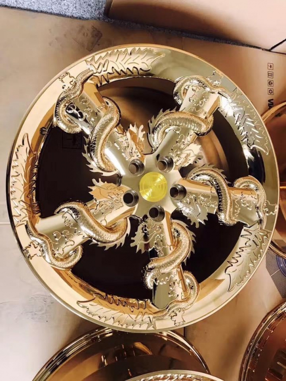 Китайская компания Dicastal Wheel Group изготовила уникальные колесные диски. 22-дюймовые колеса покрыты позолотой и украшены орнаментом из драконов - китайского символа мудрости. Стоит такой комплект без резины $7800, сообщает Аutocentre.ua.