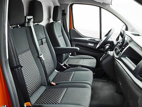 Производители также обновили салон Transit Custom. За сиденьем водителя разместили люк. В салоне спроектировали отсеки для хранения вещей. Под рычагом переключения передач установили держатель для бутылок. На передние панели - цветной сенсорный дисплей.