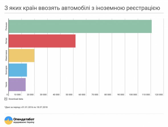 По состоянию на 31 января 2018 года из Польши завезли 110,7 тыс. На втором месте Литва и 51 тыс. авто.