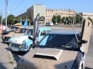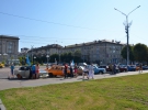 В 10:00 колонна "Москвичей" выстроилась в центре города напротив областной администрации, что на Соборной площади. Представлены марки - 2140, 412, 2141, 403, "Святогор". На некоторых установлены голубые флаги с надписью "Украинский автоклуб "Москвич", на оранжевом "Москвиче" - белый, Харьковского клуба.